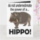 Cartão de Saudação de Hipopótamo Animal Engraçado projetado por Nisha Prabhu. Apresentando um adorável hipopótamo com tipografia engraçada ''não subestime o poder de um HIPPO''. Espalhe alegria e risadas com este hilário Cartão de Saudação de Hipopótamo Animal Engraçado! Se você está enviando desejos de aniversário, congratulações ou apenas um olá amigável, este design caprichoso certamente alegrará o dia de qualquer pessoa. Perfeito para amantes de animais e fãs de humor peculiar, este cartão de saudação é uma maneira única de mostrar que você se importa. Compre agora e compartilhe um sorriso com cada mensagem sincera!