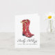 Estes cartões de natal apresentam um retrato em aquarela de um par de botas de vaqueira vermelha com a legenda "feriados moderados".