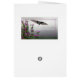 Este cartão apresenta uma foto colorida de uma casa criada em frente à sua casa de pássaros.