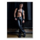 Este cartão bonito caracteriza um homem "sexy", muscular vestido no couro preto. Vazio para dentro.