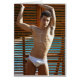 Este cartão bonito caracteriza um homem de faculdade novo considerável, magro nos speedos. Vazio para dentro.
