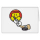 A cara do sorriso do jogador de golfe que veste a boina do golfe com o clube e a bola de golfe, esportes bonitos golf o design para miúdos e adultos!