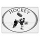 Série Desportiva Dahjo Apresentando: Hockey Um jogador de hóquei bate no disco de hóquei enquanto é perseguido pela equipe oposta. No fundo está um posto de gol e goleiro.