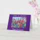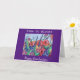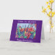 Cores vibrantes de um jardim de flores enviam uma mensagem para um novo formando "Tempo para Bloom!" O belo design com um quadro roxo brilhante foi criado da minha pintura original de aquarela de abstrato, rosas selvagens e lilases. A mensagem dentro inclui um verso de graduação favorável e feliz para o futuro.