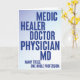 Diga o dia dos médicos felizes com este design único, no estilo da tipografia, com a mensagem em bonés ousados, "MEDIC, HEALER, DOCTOR, MÉDICO, MD. Muitos Títulos. Uma Profissão Nobre." Design aparece no plano de fundo azul gradiente e roxo. O Dentro tem esta mensagem de marcador de posição, mas pode ser personalizado com a sua própria mensagem. "Você faz um trabalho essencial que muda a vida para melhor. O que você faz é um reflexo de quem você é, e você é realmente NOTÁVEL em todos os solteiros."