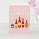 Designed with a blush pink background, this card feels warm and sweet right away ❤️. At the top it says “HAPPY VALENTINE’S DAY.” in creamy white, hand-drawn lettering that looks casual and friendly. Across the middle, five stylized condiment containers—mostly hot sauce bottles plus a small jar—stand in a neat row like a little lineup. Each one has its own look and label, with reds, oranges, greens, and pinks that pop against the soft backdrop. One bottle is classic red with a bright yellow starburst label, and another is orange with small white hearts sprinkled on it, which adds a cute romantic touch. A thin white line runs under the bottles and leads your eye down to the words “hot stuff” in matching white lettering near the bottom. The simple, flat shapes keep the focus on the joke and the affection, making it a fun way to tell someone you’re into them 🥰.