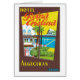 Viagens vintage do Hotel Reina Cristina em Algeciras, na Espanha do outro lado do porto de Gibraltar, ilustrado na janela.