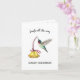 Hand-painted Christmas card featuring a ruby-throated hummingbird carrying Christmas bells.