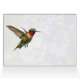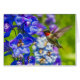 Um brilhante homem rubi atirado fotógrafos de beija-flor num jardim de verão com uma soma de larkspur.
