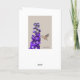 A hummingbird sipping nectar from a purple delphinium creates a beautiful greeting for a birthday.