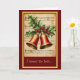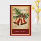 The front of this Holiday greeting card features a vintage image of two gold bells tied together and decorated with green holly leaves and red berries. Behind the bells is a parchment sheet of music. At the bottom is text in gold that says "I heard the bells... "The image is bordered in dark red with a gold and red frame. The inside of the card has the words to the wonderful poem by Henry Wadsworth Longfellow. The right side has several custom text fields, so you may easily change it to say what you'd like.