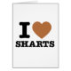 Era um peido? Ou algo mais? Esta carta de boas-vindas engraçada mostra um design simples, engraçado, com um coração castanho e leu tubarões I (coração). Só o que você precisa para um presente perfeito. Além de uma mudança de shorts.