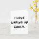 Cartão I Love Waking Up Early. Funny White Lie Party
