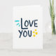 This card features the big message “I LOVE YOU” in a loose, brush-style lettering that looks like dark navy ink. The words sit centered on a wide white background, with “I” above and “LOVE YOU” taking up most of the space. To the left of the word “LOVE,” three short teal dashes point outward like little sparks, adding a burst of energy. On the lower right, just under “YOU,” five golden-yellow dots of different sizes float like confetti. The simple mix of navy, teal, and yellow on white keeps your eyes on the message and makes it feel direct and honest ❤️. It’s a meaningful card to give because it says what you feel without overexplaining, whether it’s for a partner or someone you care about 🥰. Share it to help express your Valentine’s Day feelings in a warm, straightforward way.