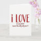 This greeting card shares a heartfelt message with a bold, personal look. Set on a bright white background, the words “i LOVE” appear centered in deep red lettering that looks hand-drawn and slightly uneven, giving it an honest, written-by-hand feel ❤️. The letters are thick and easy to notice, so the message stands out right away. Just below, a smaller line reads “(in a big red font because I like, really really mean it!),” written in a lighter, more casual style that feels like a quiet aside to the reader 💌. With no images or extra details, the focus stays on the words and the meaning behind them. The open space around the text adds a calm, thoughtful tone, making this card a lovely choice for a partner or close friend when you want your feelings to be clear and sincere on Valentine’s Day