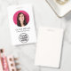 Crachá de ID corporativo simples com quadro de janela do perfil de círculo. Personalize facilmente com a foto, o nome, a posição, o logotipo da empresa, os detalhes comerciais e o código QR ou código de barras do seu funcionário. Tipografia moderna minimalista