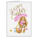 Este design de cartão de boas-vindas apresenta um adorável carregando de coelhinho de orelhas flutuantes, um cesto de ovos de Páscoa e desejando a todos um 'Felz pascoa todo-mundo'. Pastos alegres em tons de sotaques de flores cor-de-rosa, azuis e amarelas e decorativas acrescentam esses toques finais a esse gráfico de Páscoa branca. Procure ID640 para ver outros produtos com este design.