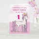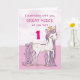 Um doce pônei rosa como sua grande sobrinha está dançando com o número um! Detalhes dourados estão entrelaçados em sua crina e cauda. Cartão perfeito para desejar à sua grande sobrinha no aniversário dela!