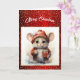 A imagem é uma ilustração adorável de um pequeno rato vestindo uma jaqueta de capuz vermelha e segurando uma caixa de presente vermelha com uma fita e uma pequena decoração oca. O rato tem olhos grandes e expressivos e uma expressão fofa e carinhosa. O fundo parece macio e ligeiramente colorido, com uma atmosfera suave e víbora sugerida pela jaqueta e pelos flocos de neve no pelo do rato. O efeito geral é charmoso e festivo.