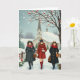 Cartão Ilustração Vintage Pessoas saindo da Igreja