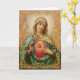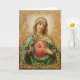 This beautiful card illustrates the Immaculate Heart of the Virgin Mary. The lovely Mother of Jesus points to the scared heart on her chest. She is dressed in green and pink robes and looks serene. This card is sure to bring comfort to whomever you chose to give it. The compassion in the Virgin's eyes is both touching and loving.