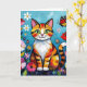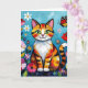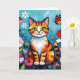 Cartão Impasto Cat, Flowers & Butterfly Birthday