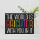 O mundo é mais brilhante com você. Seja uma força positiva no planeta com esta citação motivacional de felicidade para um amigo com depressão. Belo design de inclusão de orgulho gay LGBTQ. Partilhe essa citação motivacional que estimula e levanta espíritos com suas afirmações. Perfeito para um psicólogo com doentes mentais deprimidos ou alguém com pensamentos suicidas.