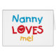 A babá ama-me T-shirts, cartas, adesivos, bolsas de fato, e mais com texto vermelho, amarelo e azul colorido e design cardíaca. Essa babá me ama roupa e os presentes farão a babá sorrir!