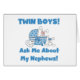 A tia ou o tio orgulhoso de sobrinho gêmeos do bebé amarão este design azul bonito que caracteriza dois coelhos que vestem bonés de beisebol e o texto azul que lê "me pergunta sobre meus sobrinho!".