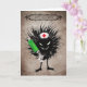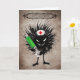 Cartão de Dia de as Bruxas engraçado com uma ilustração cartoon de um personagem de mau que segura uma seringa e o texto personalizável "Feliz Dia das Bruxas" sobre fundo texturizado de cor escura. Esta criatura estranha preparou uma injeção com um medicamento desconhecido - pode ser uma droga miraculosa, mas pode ser um veneno também. Quem está disposto a ser curado?
