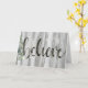 Inspiração III da Casa Farmária por Jennifer Paxton Parker. "Acredite" está escrito em uma bela escrita ao lado do verde e apresenta um fundo de madeira.