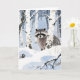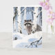 Cartão de cumprimentos com cena invernal de guaxinim.