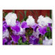 As íris farpadas roxas e brancas florescem com contraste dramático.