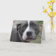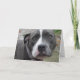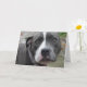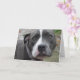 This gorgeous birthday greeting card show a stunning image of a Irish Blue Staffordshire Bull Terrier dog on the front. Inside the birthday card it has in black ink 'Have a very Happy Birthday!' in the center of it. On the back of the card it has a smaller version of the dog picture which is on the front of the card. This is a beautiful card, ideal for a friend or loved one.