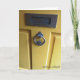 A yellow door with a traditional Claddagh door knocker and mail slot shown. Image captured in Galway, Ireland. Blank note card. Appropriate for any type of note to a loved one.
