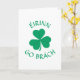 This pretty St. Patrick's Day card has a green shamrock on the front, surrounded by the phrase "ÉIRINN GO BRÁCH" in curving green lettering. Inside, the message reads "Lá fhéile Pádraig sona dhuit" (Irish Gaelic for "Happy St. Patrick's Day"). Perfect for Gaelic speakers or scholars.