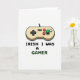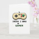 This card features a beige, 16-bit style video game controller floating near the top of a bright white background, outlined in black with a small shadow that makes it feel gently suspended. The D-pad and “START” area are dark, while the action buttons add small hits of red, green, and white that draw your eye like a familiar shared inside joke between friends. Beneath the controller, the phrase “IRISH I WAS A GAMER” sits centered in a pixel-style font that nods to classic games. Most of the lettering is black, but “GAMER” switches to emerald green for a St. Patrick’s Day twist 💚. The wide open space around the design keeps everything focused on the controller and the line of text, like a simple note passed between two people who get each other. The controller’s angled position and tidy shading give it a soft, almost inviting presence, as if it’s waiting for someone else to pick up the second player ☘️. The word “GAMER” appears in green directly below the controller, standing out against the white background.