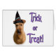 Serão truques ou ameaças neste Halloween? O nosso design de férias tem a sua raça de cão favorita, o Terrier irlandês, vestindo o chapéu de bruxa. Adicione um pouco de 'Hocus Pocus' a All Hallows este ano!