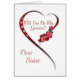 Convite para Irmã para ser uma saudação. Um convite maravilhoso para seus assistentes de casamento. Eles vão tesourar este cartão para sempre. Uma visão moderna sobre um tema tradicional mostra um coração giro com rosas vermelhas. Norma Cornes.