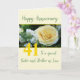Cartão personalizável de aniversário de casamento para uma Irmã e Irmão em Direito. Surpreenda o feliz casal no dia especial deles com esta rosa amarela. Você pode mudar o aniversário para qualquer ano para criar esse ano especial. Este cartão de aniversário também está disponível para outras relações familiares, em algumas línguas não inglesas e como cartão geral.