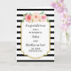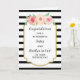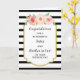 Parabéns no cartão do dia do casamento para irmã e irmão com listras brancas e pretas e flores cor-de-água rosa, e verso sentimental.