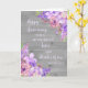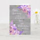 Feliz cartão de aniversário de casamento para irmã e irmão com lindas flores roxas, madeiras rústicas e versos sentimentais.