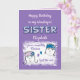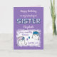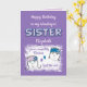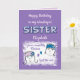 Personalize este Cartão de Aniversário para a sua maravilhosa Irmã, que é completamente fabulosa, tal como tu! Projetada em roxo, lilás e azul, com duas 'faces de menina' e corações. Adicione seu nome e mude texto de acordo.
