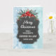 Feliz Natal para a irmã no cartão de direito com o padrão rústico do quadro-negro e folhagem de inverno com poinsettias.