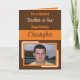 Para um cartão especial de aniversário cunhado. Personalize este Cartão de Saudações com uma fotografia e um nome. Projetado em castanho, laranja e pêssego.