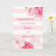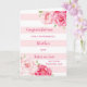 Parabéns no cartão do dia do seu casamento para irmão e irmã com listras rosa e branca e flores rosa-d'água, e verso sentimental.