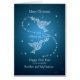 Um cartão de Natal para seu irmão e sua noiva. Duas pombas de ramos de carregando de paz. As pombas são desenhadas com muitos símbolos de Natal e flocos de neve. As pombas estão voando num cheio azul de estrelas. Um maravilhoso cartão de Natal que será bem-vindo pelo seu irmão.