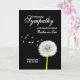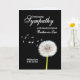 Envie sua simpatia pela perda de um cunhado. Um relógio de dandelion sereno, suas sementes flutuando suavemente ao vento, contra um pano de fundo escuro. O cartão evoca paz, memória e o fluxo natural da vida.