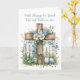 Este delicioso cartão de Páscoa apresenta uma cruz serena de madeira enrolado com flores azuis macios, colocada contra uma cerca branca rústica cercada por flores correspondentes. A escolha perfeita para uma irmã especial e seu marido, ela oferece uma mensagem sincera para celebrar a temporada. Dentro, desejos calorosos por uma Páscoa alegre e um cheio primavera de felicidade criam um sentimento adorável por esta época significativa do ano.