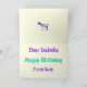 Goats love to climb onto things, so why not take that concept a little further and add your friend's or family's name and they can become standing room for this funny colourful goat. This quirky card is easy to customise, just use the template on the right to change the names by replacing Isabella with another name or greetings from Happy Birthday to any other greeting to create a truly personalised card for any occasion. You can even resize the images and change the text and background colours to create a unique card you won't find on the high street. Multicoloured goat design by artist Catherine Sweetman.